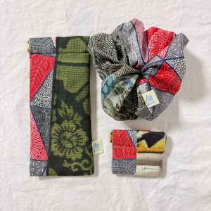 こちらの福袋の中身は、大阪関西万博で活躍した作品たちです。こちらは全てフィリピンの伝統生地と着物を合わせた作品です。