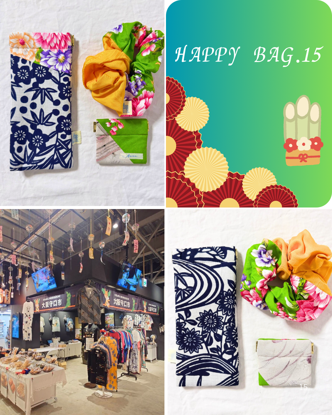 こちらの福袋の中身は、大阪関西万博で活躍した作品たちです。こちらは全て台湾の伝統柄と着物を合わせた作品です。