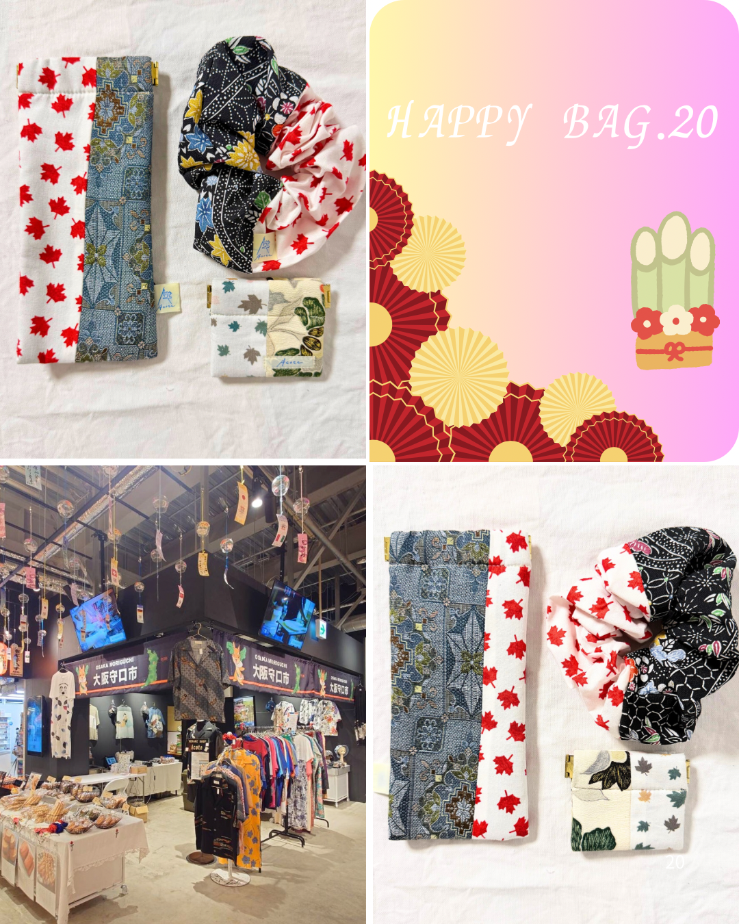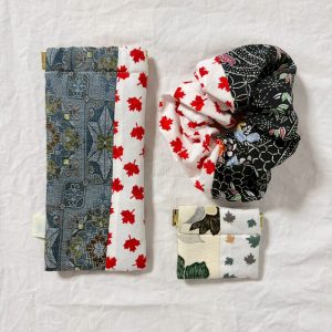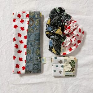 こちらの福袋の中身は、大阪関西万博で活躍した作品たちです。こちらは全てカナダの伝統柄と着物や浴衣を合わせた作品です。